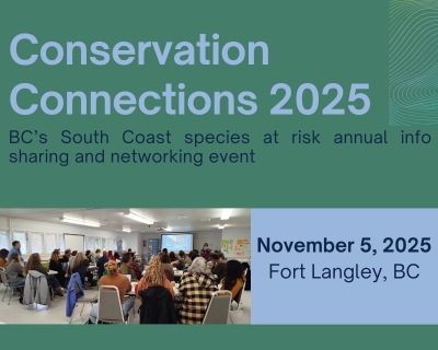 Registration is now open for the BC’s South Coast 2025 species at risk annual info sharing and networking event taking place on Wednesday November 5, 2025!